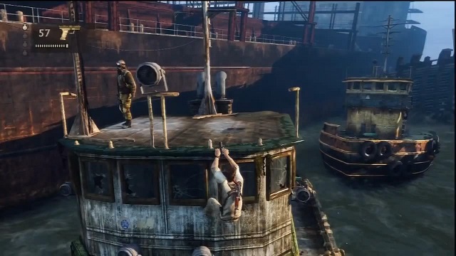 A hangulat ismét a tetőfokán volt, s két nap alatt le is gyűrtem ezt a részt (is). Ugyanis nem lehetett abbahagyni, annyira berántott. Persze ehhez kellettek a megfelelő tájak is, amelyek viszonylag elég szépre sikeredtek. A korábbi epizódoknál felhoztam negatívumnak, hogy a játéknak csak sima HD felbontása van, ami egy full HD TV-nél nem kicsit zavaró. Azonban egy kommentelőnek köszönhetően (innen is hatalmas pacsi érte) sikerült azt a fajta rendszer beállítást elérnem, hogy a konzol full HD felbontásra konvertálja az adott tartalmat. Így aztán felbontás szempontjából panasz nem lehet erre a részre. Az adott helyszínek pedig hihetetlenül fantasztikusra sikeredtek. Egyszerűen nem tudtam velük betelni. Habár hiányzott némi havazás utáni tájegység, mint az előző részben, de szerencsére a többi helyszín kárpótolt. A „hajótemető” elég érdekesre sikerült, de például, amikor a süllyedő hajón kellett a túlélésért küzdeni, az valami fenomenális volt. Előre megnézett videók lelőtték a sivatagos részt, azonban vártam, hogy majd a játék elején lesz, de tévedtem. Viszont a játék egyik legszebb helyszíne nevet simán kiérdemelheti ez a pár fejezet, amely itt játszódik.